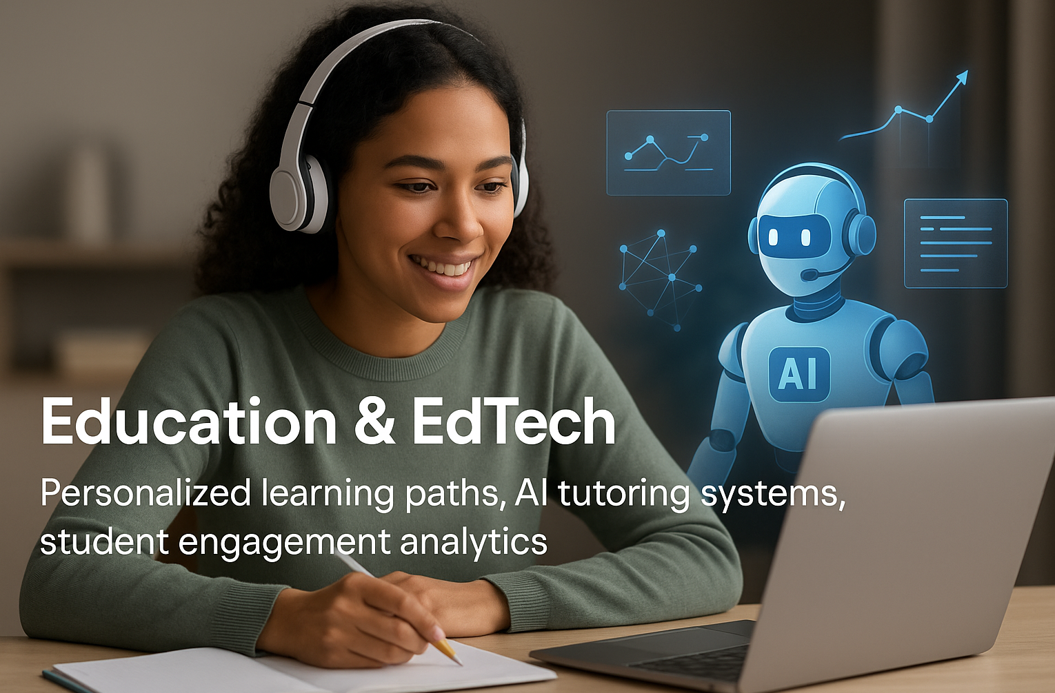 Education & EdTech → Personalized learning paths, AI tutoring systems, student engagement analytics.